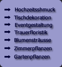 Verschiedene Schnittblumen, geschmackvolle Arrangements und Gestecke für jeden Anlass. Unsere Produkte stammen aus einheimischer und ausländischer Produktion, um Ihnen so das ganze Jahr über eine repräsentative Vielfalt bieten zu können.